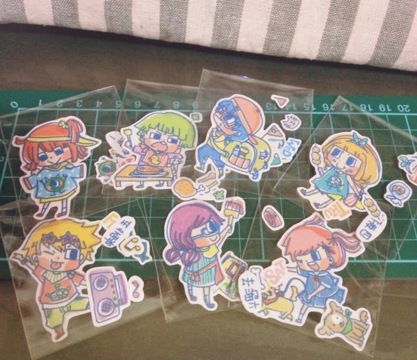 7款角色圖案搭配各式小物件不拆售,貼紙包大小約6x7cm