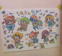 7款角色圖案搭配各式小物件不拆售,貼紙包大小約6x7cm