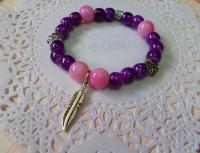 材質:8mm 紫水染珠 x 10mm 桃粉水染雙色 x 羽毛