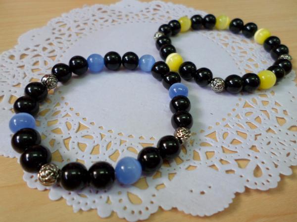 ② 8mm 黑水晶珍珠 8mm 藍貓眼石