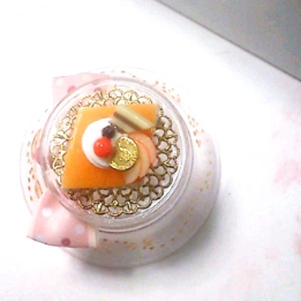 (橘味起司蛋糕作品與杯子是一體的,有黏在一起。