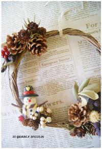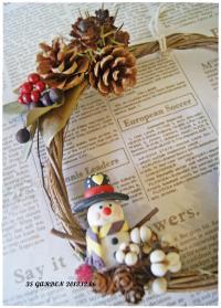 歡樂 聖誕交換禮物 雪人 松樹果實 手作藤圈