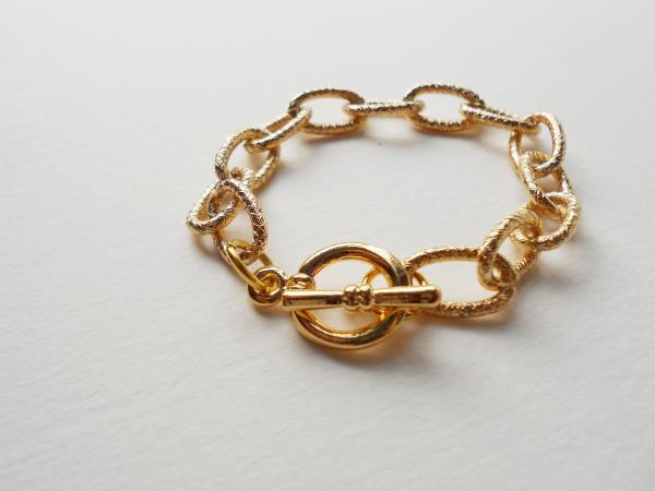 YULU TENG 秀氣款紋路造型金屬OT扣手鍊(金色)
