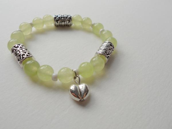 YULU TENG 天然石。彩玉髓蘋果綠。雕花手環