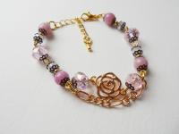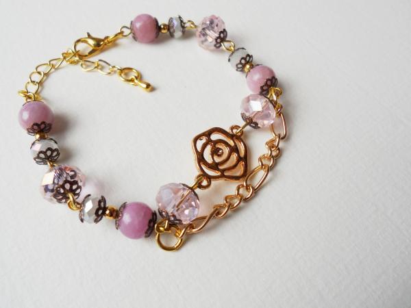 YULU TENG天然石/米玉黃。玫瑰雙層手鍊(淺紫)
