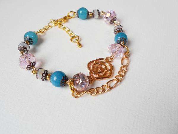 YULU TENG天然石/米玉黃。玫瑰雙層手鍊(天藍)