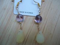 材質: 粉藍色扁圓水晶+珍珠,銀色合金配件/韓國製鍊條