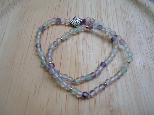 紫色.綠色.透明的螢石圓珠,晶瑩剔透的戴在手上,心情也會變得清新了起來~~