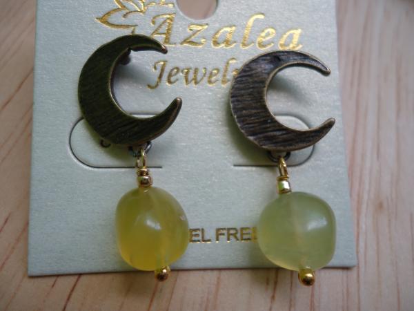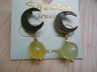 材質: 天然不定型橄欖玉,金色合金配件/ 古銅月型耳針 (不能改夾)