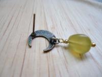 弦月型的古銅色耳針加上猶如檸檬色的天然石橄欖玉,一幅月光如玉灑落一地的畫面--適合獨特的你!!