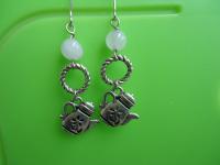 材質: 天然石,古銀色茶壺墜子,銀色合金配件.耳勾