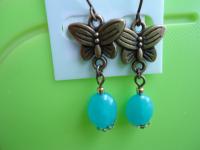 材質: 海藍色天然玉石,古銅色/金色合金配件.耳勾