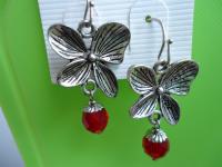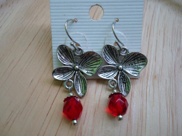 材質: 透亮紅色切割玻璃珠,古銀色/銀色合金配件.耳勾 (可改夾)