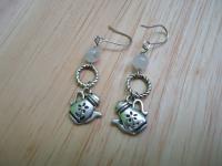 材質: 粉晶園珠/水滴型粉晶珠,珍珠,銀色合金配件.耳勾 (可改夾)