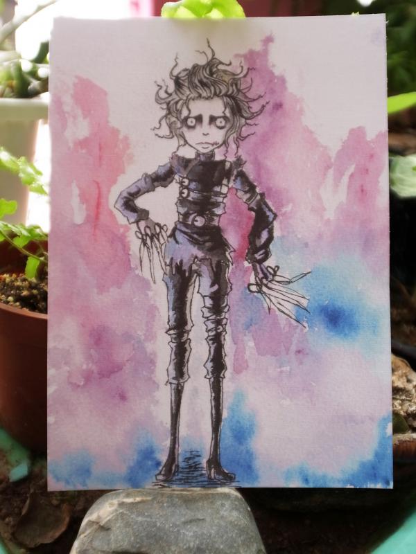 插畫家明信片-手繪水彩-奇幻明信片-剪刀手