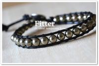材質:黃鐵礦6mm、真牛皮繩、不鏽鋼扣