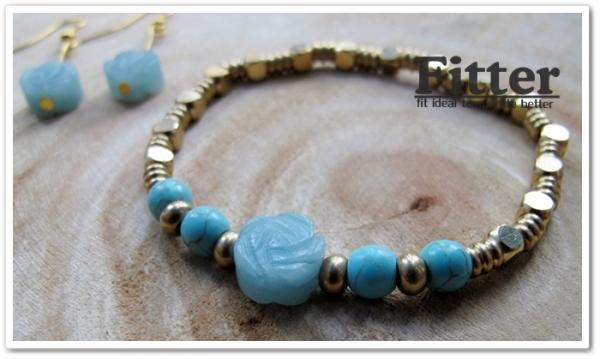 天然天河石雕刻玫瑰、綠松石、純黃銅