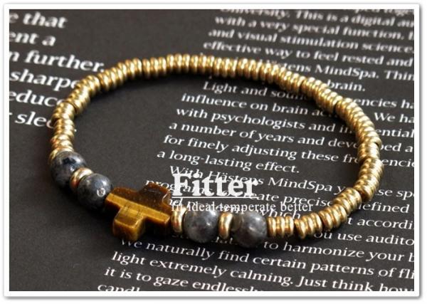 閃光石6mm、十字架虎眼石、純黃銅
