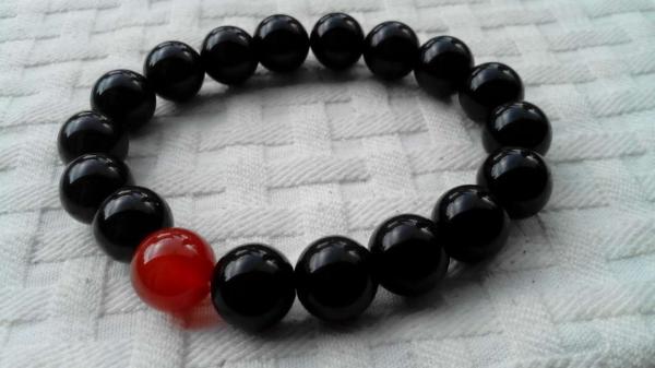 此款手鍊為黑曜石搭配單顆紅瑪瑙,簡單大方