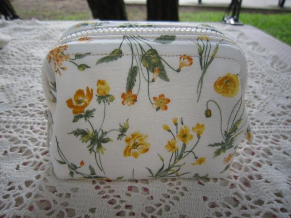 白底黃橘花草10公分方形支架零錢包