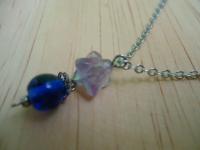 材質: 天然螢石+深藍色琉璃珠,銀色合金配件.銀鍊