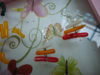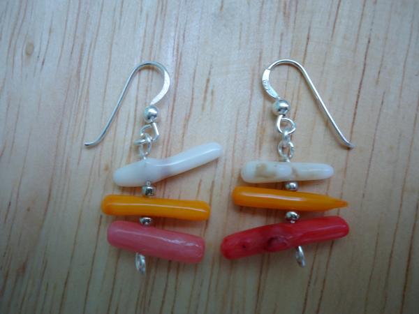 材質: 多色珊瑚,鍍銀銅線,925純銀耳勾(可改夾)
