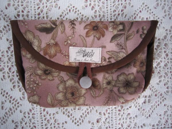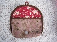 藕色暈染花草表布,紅色碎花草裡布,滾邊為咖啡色素棉布。