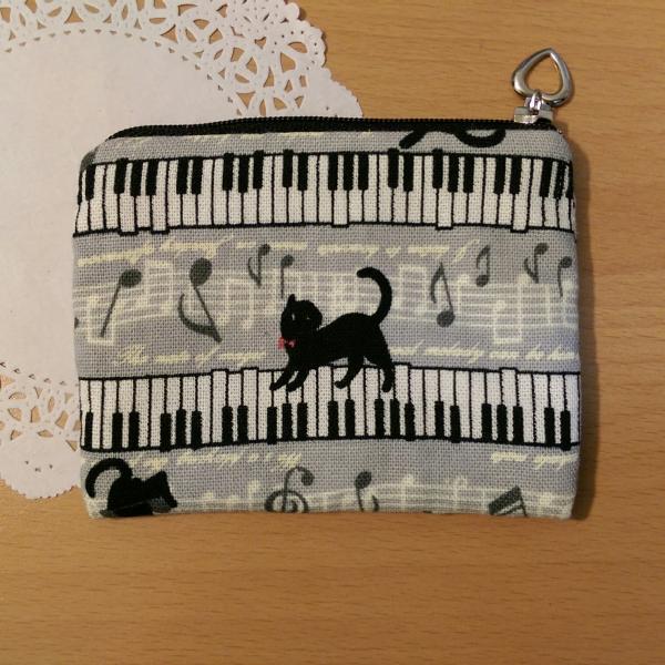 【鋼琴與黑貓零錢包(灰色)】音樂 樂器