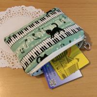 【鋼琴與黑貓零錢包(綠色)】音樂 樂器