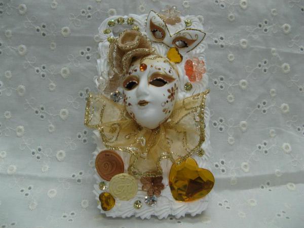 作者是以嘉年華華麗的面具構想出發,來完成的作品,從面具整體捏塑至臉部的線條皆是手工畫上,完整呈現了嘉年華中的鬼譎與華麗的感覺。