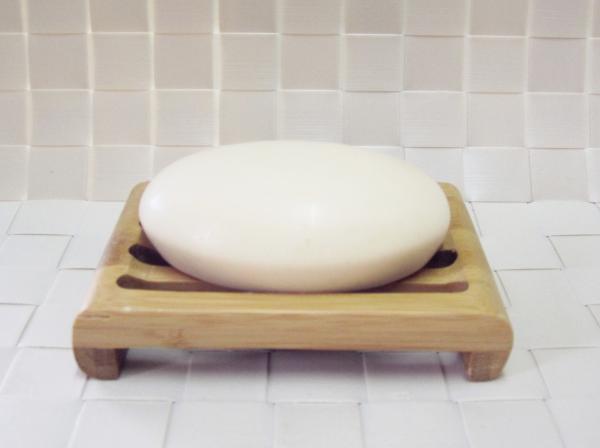 商品配備:皂體包膜、商品標籤、木質皂盒