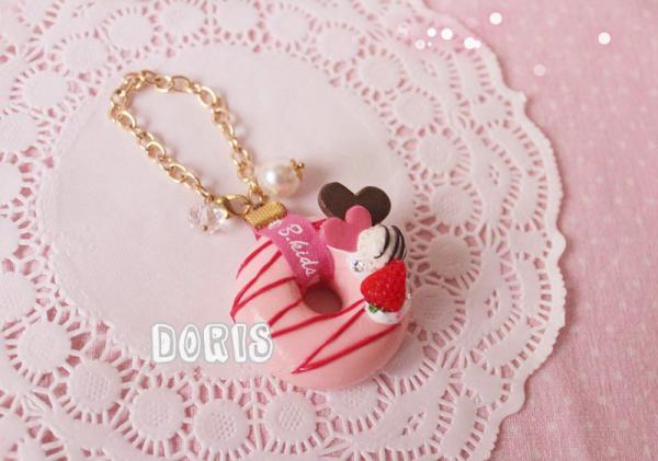 【Doris.手創甜點】 草莓甜甜圈 包包飾品