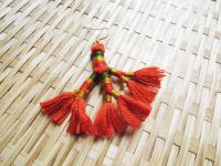 將象徵小米串的三色繡線纏繞成樹枝狀