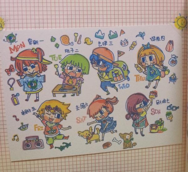 以這個有趣的段句畫出了自己想像的一星期插圖,希望大家也覺得有趣