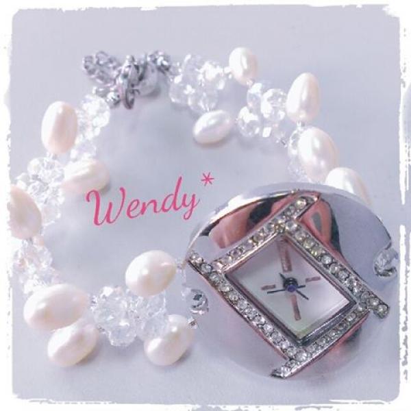 ★天然白珍珠水晶手錶(Ea)★