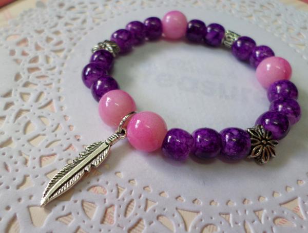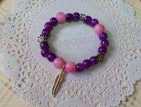 材質:8mm 紫水染珠 x 10mm 桃粉水染雙色 x 羽毛