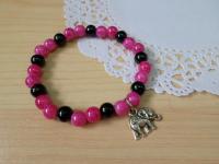 ② 86mm 黑水晶珍珠 8mm 粉水染珠 x 大象吊飾
