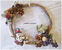 歡樂 聖誕交換禮物 雪人 松樹果實 手作藤圈