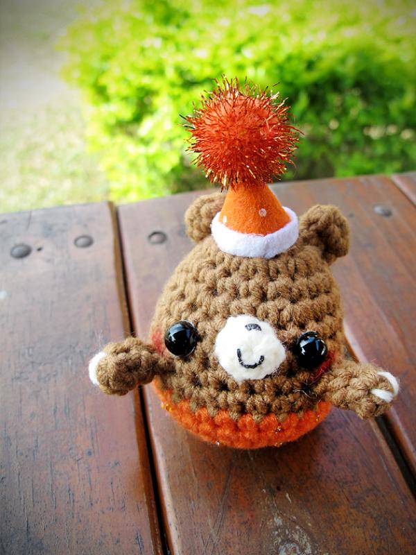 這隻熊熊穿上了橙色衣服,戴上歡樂的橙帽,開心的參加party!