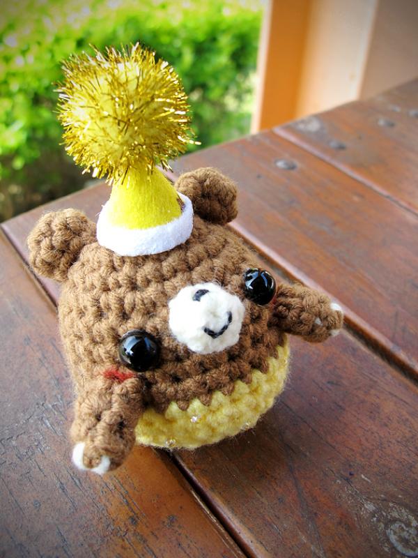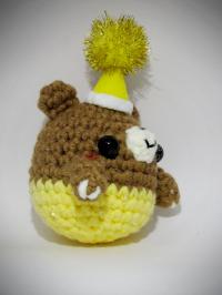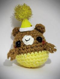 這隻熊熊穿上了黃色衣服,戴上歡樂的黃帽,開心的參加party!