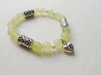 YULU TENG 天然石。彩玉髓蘋果綠。雕花手環