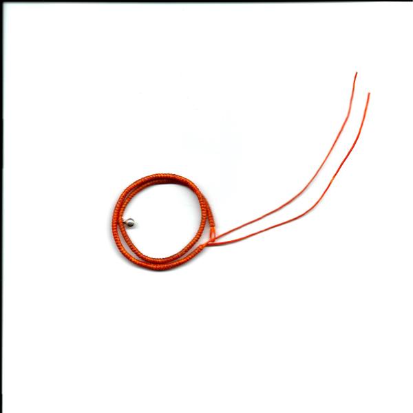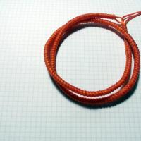 此種線材由國外進口。由幾十條蠶絲用蠟包裹搓揉而成的線材。表面有一層蠟,編製好後會比較硬挺,但下水後外層的蠟會遇水而脫落,繩子也會變得柔軟,鮮艷亮麗的顏色會慢慢顯現出來,整體質感更加。可以戴著洗澡,不會退色,也不會像其他線材一樣,因吸了水而變臭,可以長時間配戴,亦不易過敏。