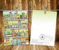 插畫小筆記本,雙面有圖,騎馬釘裝訂,內頁為80磅模造紙,完全空白(無格線)。