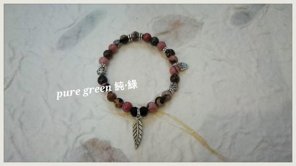 ☆PURE GREEN☆ 春 .黑線紅紋石與古銀葉片
