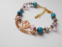 YULU TENG天然石/米玉黃。玫瑰雙層手鍊(天藍)