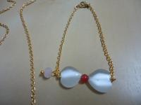 由心型貓眼石加上彩色可愛小珠子組合成的頸鍊,有白色.藍色兩款