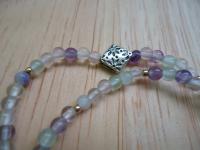 紫色.綠色.透明的螢石圓珠,晶瑩剔透的戴在手上,心情也會變得清新了起來~~