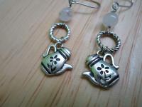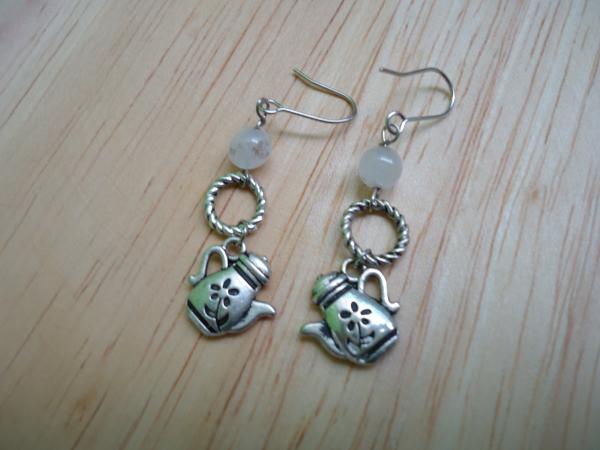 材質: 天然石,古銀色茶壺墜子,銀色合金配件.耳勾