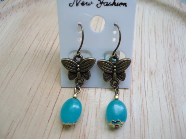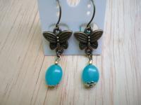材質: 海藍色天然玉石,古銅色/金色合金配件.耳勾