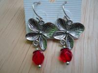 材質: 透亮紅色切割玻璃珠,古銀色/銀色合金配件.耳勾 (可改夾)